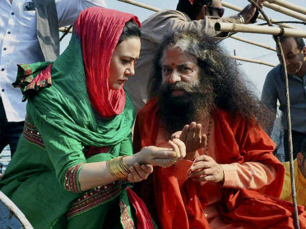 कुंभ में स्नान के बाद पूजा-अर्चना करती अभिनेत्री प्रीती जिंटा।
