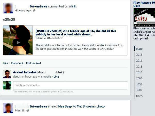 हम जो उदाहरण पेश कर रहे हैं, उसमें लखनऊ के रितेश श्रीवास्तव भुक्तभोगी हैं। 19 मई को रितेश फेसबुक पर फीड चेक कर रहे थे, तभी एक लिंक दिखाई दिया, जिसमें एक लड़की बनी थी, जिसके हिप्स की एक झलक दिख रही थी। उन्होंने वीडियो को डिलीट करने के लिये पोस्ट पर क्लिक कर दिया। फिर क्या कहने थे, रितेश की टाइमलाइन पर चार-पांच बार यह पोस्ट चिपक गया, जिसमें लिखा था, "एक लड़की जिसने पब्लिसिटी पाने के लिये शराब के नशे में बीच सड़क ये क्या किया।" रितेश को इस बात का इल्म नहीं था कि उनकी टाइमलाइन पर क्या चल रहा है। देखते ही देखते उनके मित्रों ने उनके साथ खेलना शुरू कर दिया। कुछ ऐसे कमेंट पड़ने लगे- बहुत खूब रितेश जी, आज कल क्या-क्या देख रहे हैं रितेश जी? रितेश आज कल खूब मजे ले रहे हो... वगैरह-वगैरह।