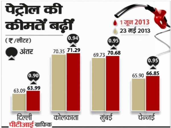 आईओसी ने एक वक्तव्य जारी करते हुए कहा कि डॉलर के मुकाबले रुपये का अवमूल्यन हो जाने के कारण तेल की कीमतें बढ़ी और यह वृद्धि की गई है। प्रति डॉलर रुपया 54.26 रुपये से गिर कर 55.32 रुपये हो गया है। पेट्रोल की कीमतों की पिछली समीक्षा 1 मई को हुई थी और तब 2.50 रुपये प्रति लीटर की कमी की गई थी।