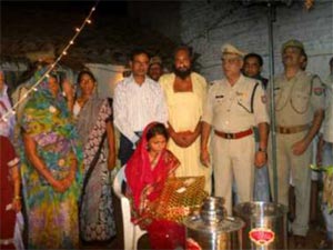 हुआ यों कि गोखरही गांव के किसान राम सिंह की मौत पिछले करीब 16 साल पहले हो चुकी थी, उसकी एकलौती बेटी रीतू उस समय हमज 10 साल की थी। मृत किसान के पास खुद का आशियाना भी नहीं था, सो उसकी विधवा विमला सरकारी जमीन पर घास-फूस की झोपड़ी बना कर बेटी के साथ जिंदगी के सोलह साल गुजारे। इधर, बेटी की उम्र 26 साल की हुई तो उसे उसकी शादी चिंता सताने लगी। गांव के लोगों ने उसकी चिंता से कुरसेजा पीठ के महंत परमेश्वरदास को अवगत कराया, इसी बीच तिंदवारी थाना के थानाध्यक्ष अब्दुल रज्जाक ने पुलिस अधीक्षक बांदा उदय शंकर जायसवाल को बताया तो समूचा पुलिस विभाग ही उसकी मदद में हाथ उठा दिया। फिर क्या था, रविवार को घाटमपुर क्षेत्र के गांव जैतीपुर का युवक विकास दूल्हा बन दुल्हन के दरवाजे आया तो बारातियों की खातिरदारी में पुलिस के कई अधिकारी जुट गए। इतना ही नहीं, बुंदेली परम्परा के अनुरूप दुल्हन की बिदाई के समय तक पुलिस अधीक्षक जायसवाल दुल्हन के पिता की भूमिका निभाते रहे।