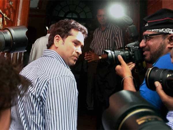 सचिन के संसद पहुंचते ही उमड़ पड़ी मीडिया
