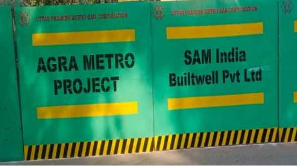 आगरा में पहले मेट्रो स्टेशन निर्माण के लिए की गई बैरिकेडिंग, 2025 तक शहरभर में मेट्रो चलाने की योजना