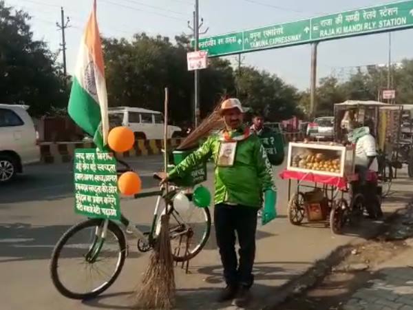 Agra news, आगरा। उत्तर प्रदेश के आगरा में एक ऑटो चालक 'सफाई अंकल' के रूप में अपनी पहचान बना चुका है। मजबूत इरादों के साथ अपनी साइकिल पर निकला यह शख्स देश में स्वच्छता मिशन को आगे बढ़ा रहा है। उन लोगों के लिए उदाहरण पेश कर रहा है जो बिना सोचे समझे सड़क और सार्वजनिक स्थान पर गंदगी फैला देते हैं। इनका नाम है अनीश द्विवेदी जो ताजगंज थाना क्षेत्र अंतर्गत ताजनगरी आर के पुरम क्षेत्र में रहते हैं।