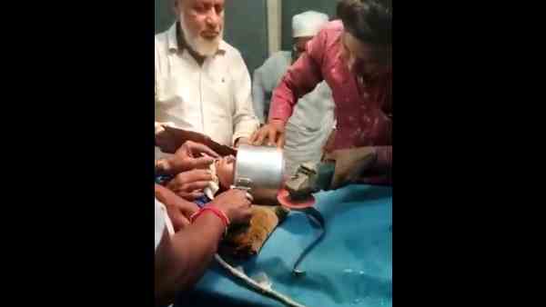 आगरा, 28 अगस्त: खबर उत्तर प्रदेश के आगरा जिले से है। यहां राजामंडी स्थित एमएम चैरिटेबल अस्पताल में एक ऐसा मामला सामने आया है, जिसे सुनकर हर कोई हैरान रह गया। दरअसल, परिवार के कुछ लोग अपने मासूम बच्चे को लेकर अस्पताल पहुंचे थे, जिसका सिर कुकर में फंसा हुआ था। डॉक्टरों ने दो घंटे की कड़ी मशक्कत के बाद कुकर को ग्लाइडर से काट कर बच्चे की जान बचा लिया। जिसका वीडियो भी सामने आया है।