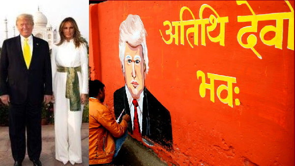 ताजनगरी में ट्रंप: उनके स्वागत में हिंदी में लगे 1000 से ज्यादा होर्डिंग, भगवा रंग में यूं रंगी दीवारें