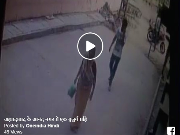 गुजरात के अहमदाबाद में आनंद नगर का एक वीडियो सामने आया है जिसमें एक लुटेरा एक बुजुर्ग महिला के गले से चेन छीनता हुआ दिखाई दे रहा है।