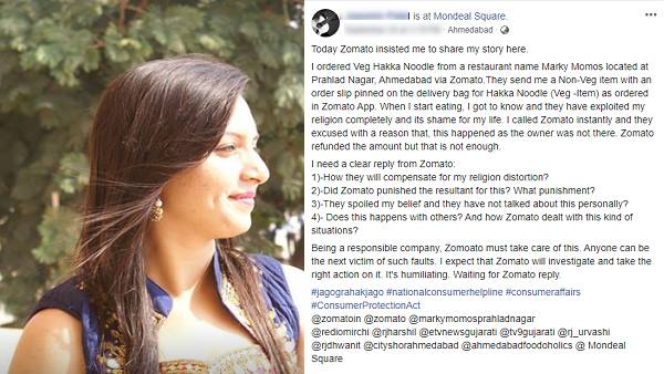 वेज नूडल्स मंगाने पर जोमेटो वाला देकर चला गया मांस, युवती ने फेसबुक पर बयां की आपबीती