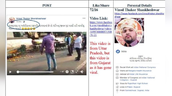 अहमदाबाद क्राइम ब्रांच के सहायक पुलिस आयुक्त (एसीपी) बी.वी.गोहिल ने बताया कि, 'विनोद ठाकोर शंखेश्वर' की फेसबुक आईडी से 9 फरवरी की रात को फर्जी वीडियो वायरल किया गया था। वीडियो पोस्ट करने के दौरान कमेंट्स भी गुजराती में लिखी थी। लिखा था कि 'अहमदाबाद में अमरीका के राष्ट्रपति आने वाले हैं। तो गरीबों का जीवन बर्बाद कर दिया है भाजपा सरकार ने' ऐसा करके उसने लोगों को उकसाने की कोशिश की। उसने यह अफवाह फैलाने चाही कि कैसे प्रशासन द्वारा अहमदाबाद में लोगों को उनकी जगह से भगाया जा रहा है।