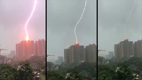 अहमदाबाद। गुजरात में अहमदाबाद के साउथ बोपल में एक इमारत पर आसमान से अचानक बिजली टूट पड़ी। तीव्र गति से बिजली टूटने से इमारत का ऊपरी हिस्सा डैमेज हो गया। इमारत में मौजूद लोग भयभीत हो गए। बिजली गिरने के फौरन बाद कुछ तो इमारत छोड़ बाहर निकल भागे। वहीं, आस-पास के लोग भी बिजली गिरने का दृश्य देख सहम गए। बिजली जिस तरह से गिरी, ऐसा इलाके में पहले कभी नहीं देखा गया था। यह पूरी घटना कैमरे में कैद हो गई। अब इस घटना का वीडियो वायरल हो रहा है।