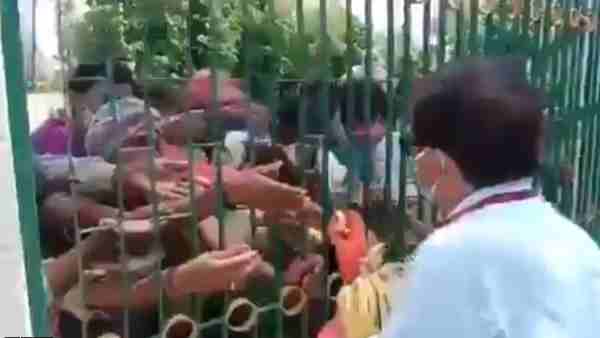 दरअसल, सीएवी इंटर कॉलेज में कलेक्शन सेंटर बनाया गया है। यहां मध्य प्रदेश से 39 बसों से लाए गए लगभग 1200 मजदूरों को रखा गया है। आरोप है कि, उन्हें कई घंटों तक भूखे प्यासे ही रखा गया है। पिछले कई घंटे से भूखे प्यासे मजदूरों के लिए प्रशासन की ओर से जब बिस्किट और केला मंगाया गया तो उसे लेने के लिए मजदूरों में होड़ सी मच गई। भूखे प्यासे मजदूर पार्क के अंदर से ही बिस्किट और केला पाने के लिए टूट पड़े। इस दौरान उन्हें सोशल डिस्टेंसिंग का भी कोई ध्यान नहीं रहा।