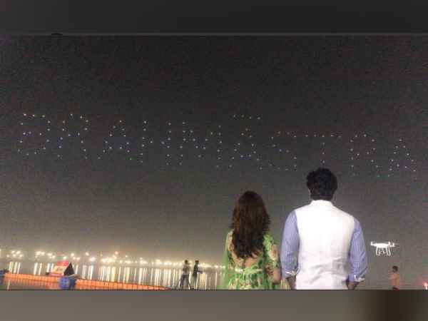 ब्रह्मास्त्र फिल्म के प्रमोशन के दौरान संगम तट पर 250 ड्रोन कैमरे के जरिए आकाश में कुंभ 2019 व ब्रह्मास्त्र की डिजायन के साथ ही आकाश में तिरंगा बनाया गया। ड्रोन कैमरे के जरिए दिव्य कुंभ व ब्रह्मास्त्र को आसमान में लिखकर सूटिंग की गयी। लगभग आधे घंटे तक आकाश में रंग बिरंगी लाइटों के बीच यह मनमोहक प्रदर्शन चलता रहा और दर्शक मंत्रमुग्ध होकर इस पल को देखते रहे। फिल्म प्रमोशन के बाद इन कलाकारों ने गंगा किनारे सेल्फी ली और रात को गंगा तट पर पूजा अर्चना व आरती की।