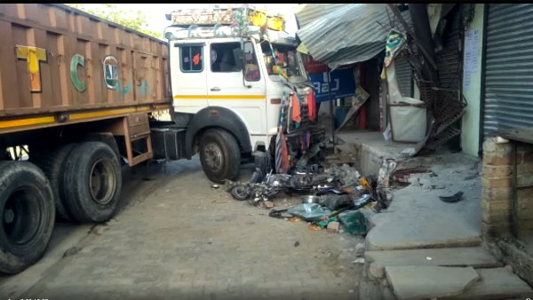 दो लोगों को कुचलने के बाद दुकान में घुसा ट्रोला, युवक के दोनों पैर टूटे