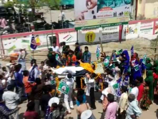 अर्थी सजाकर नामांकर करने पहुंचा उम्मीदवार, राहुल और स्मृति के सामने लड़ेगा चुनाव