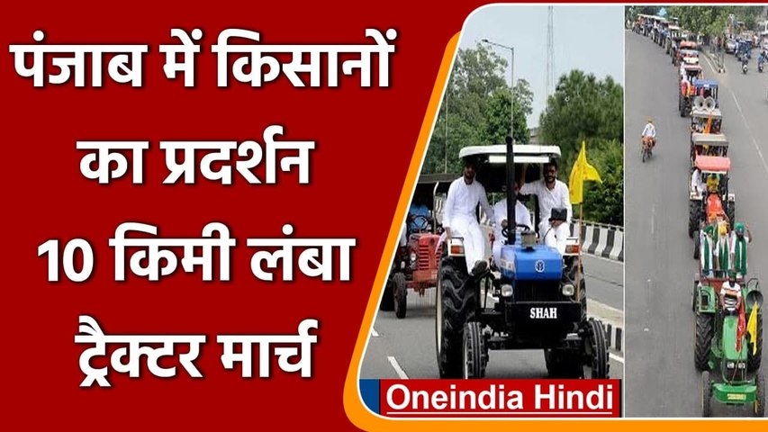 कृषि कानूनों के खिलाफ किसानों ने पंजाब में निकाला मार्च, ट्रैक्टरों का 10 KM लंबा काफिला नजर आया