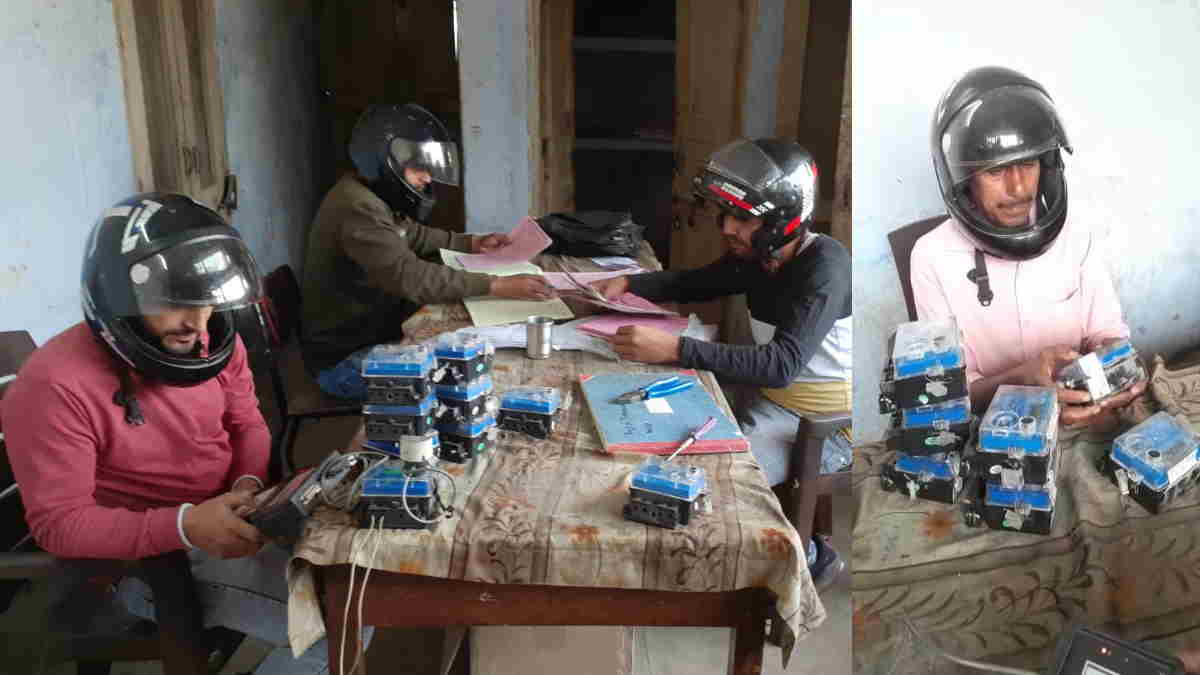 दफ़्तर में 'हेलमेट' लगाकर काम करते नज़र आए कर्मचारी