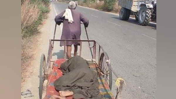 नहीं मिली एंबुलेंस तो बीमार पत्नी को ठेले पर अस्पताल ले गया बुजुर्ग, फिर भी नहीं बच सकी जान