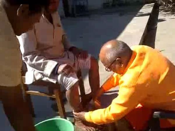 मोदी की राह पर बलिया के CMO, भगवा शर्ट पहनकर धोए सफाईकर्मी के पैर: VIDEO