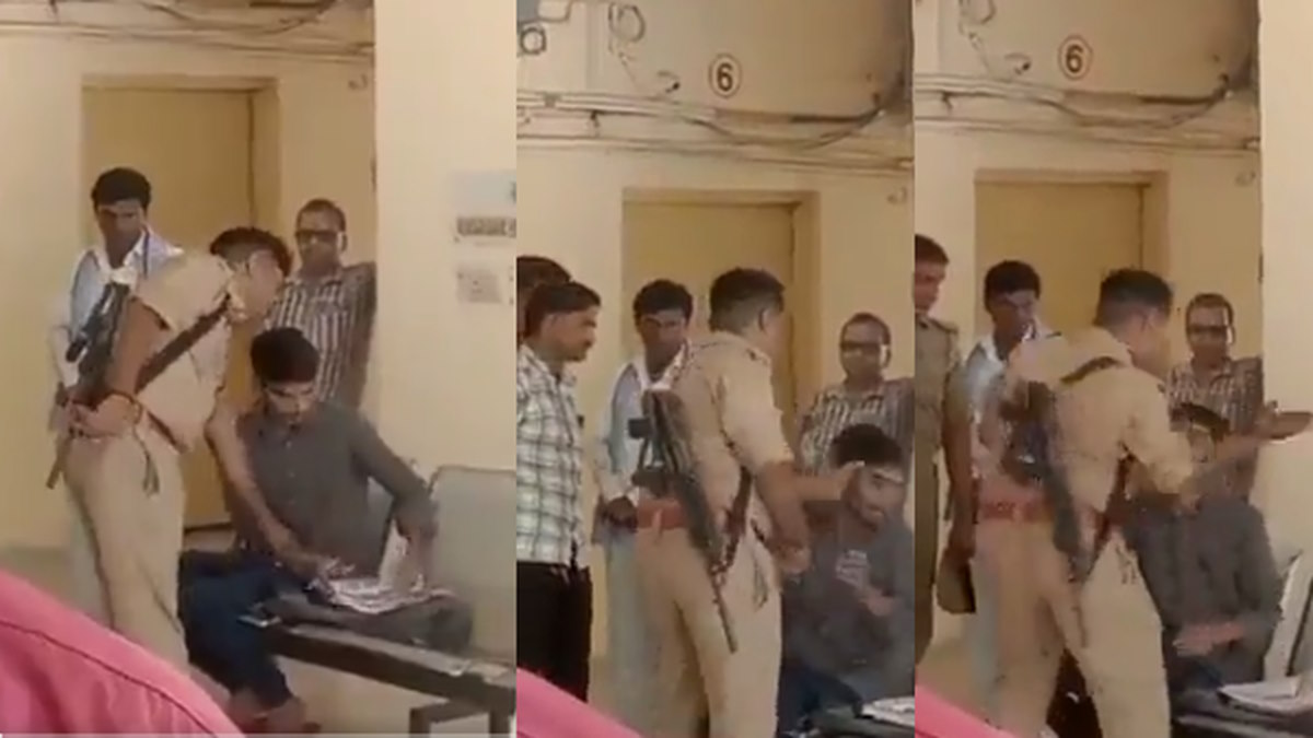 उत्तर प्रदेश से एक वीडियो सामने आया है, जिसमें बंदूकधारी पुलिसकर्मी एक युवक के सरेआम थप्पड़ मारता दिखाई दे रहा है।