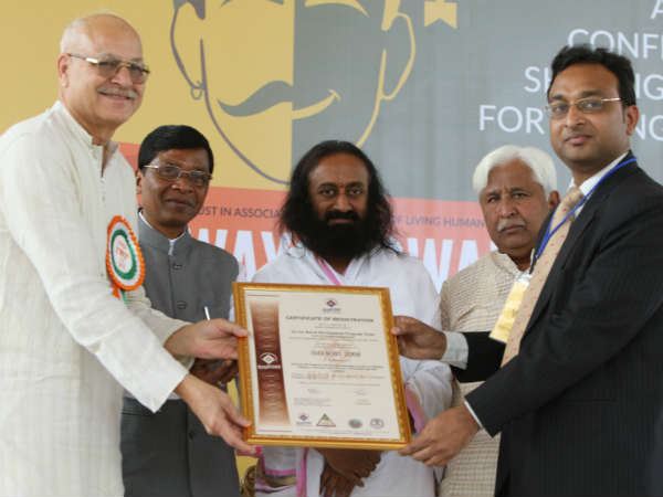 इस मौके पर आर्ट ऑफ लिविंग के संस्थापक श्री श्री रविशंकर के अतिरिक्त सामाजिक कार्यकर्ता अन्ना हजारे, श्री सर्बानंद सोनवाल, राज्यमंत्री, खेल और युवा मामले, श्री सुदर्शन भगत, राज्यमंत्री, ग्रामीण विकास, एच. के पाटिल, ग्रामीण विकास एवं पंचायती राज, सुनील अंबेकर, राष्ट्रीय संगठन अखिल भारतीय विद्यार्थी परिषद के सचिव उपस्थित थे।
