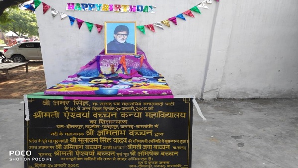 बता दें कि करीब 11 साल पहले इस गांव में अमिताभ बच्चन आए थे और इस दौरान उन्होंने गांव में ऐश्वर्या राय बच्चन कन्या महाविद्यालय स्थापित करने का वादा था। हालांकि अभी तक इस पर कोई काम नहीं हुआ है। अमिताभ ने दौलतपुर गांव में करीब 10 बीघे जमीन लेकर एक डिग्री कॉलेज का नींव रखी थी। लेकिन जो जमीन अमिताभ बच्चन ने ली थी, वह अभी तक वैसी ही पड़ी है। ऐसे में गांव के लोगों ने अमिताभ बच्चन का जन्मदिन मनाकर उनसे कॉलेज शुरू करवाने की अपील की।