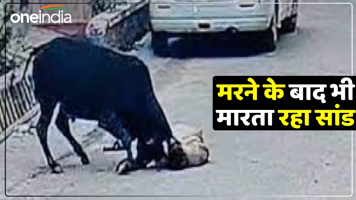 सांड ने बुजुर्ग को धक्का देकर गिराया, फिर मौत के बाद भी मारता रहा, Viral Video देख कांप उठी लोगों की रूह