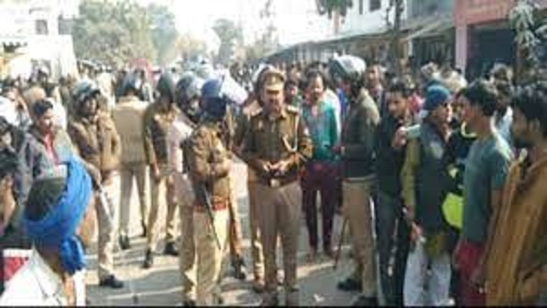 बस्ती में पुलिस की दबिश के दौरान व्यक्ति की मौत हो गयी। आक्रोशित परिजनों ने शव को मार्ग पर रख कर प्रदर्शन करना शुरु कर दिया।