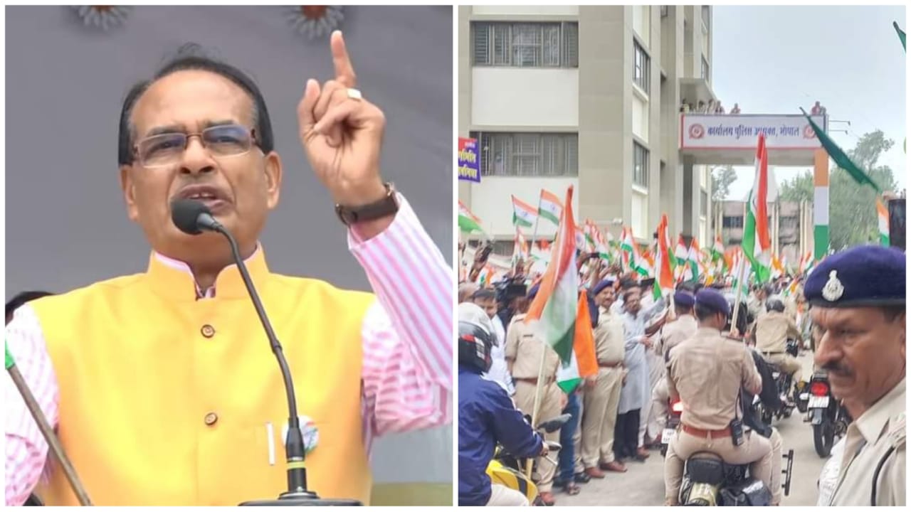 सीएम शिवराज के सामने भोपाल में पुलिस के हजारों जवान हाथों में लेकर निकले तिरंगा