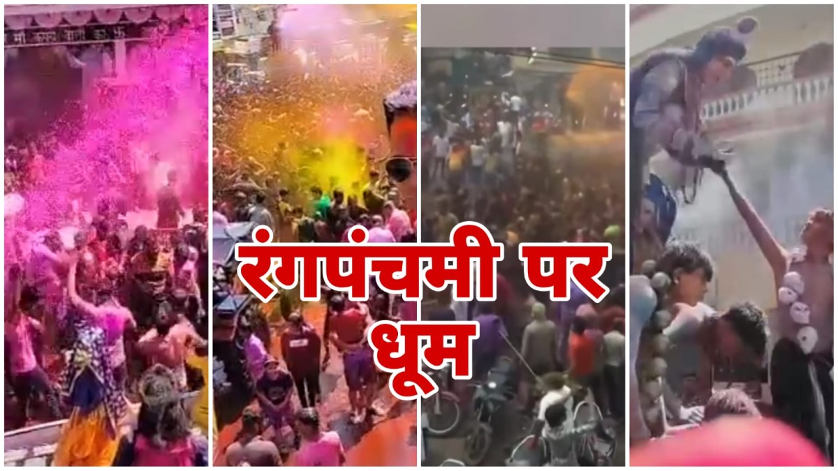Bhopal Panchami News: राजधानी भोपाल शाहिद पूरे प्रदेशभर में रंग पंचमी का त्यौहार बड़े धूमधाम से मनाया जा रहा है। शहर में रंग पंचमी पर सबसे बड़ा आयोजन पुराने शहर के चौक बाजार में हो रहा है। सुबह-सुबह चौक से रंग पंचमी का चल समारोह प्रारंभ हुआ जो लोहा बाजार, सिंधी मार्केट, भवानी चौक लखेरापुरा, चिंतामणि चौराहा, इतवारा, मंगलवार, घोड़ा निक्कास हनुमानगंज होते हुए हनुमान जी की मडिया पहुंचा।