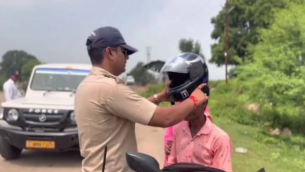 MP Police: पुलिस वाले ने मंत्रोच्चार के साथ बाइक चालक को पहनाया हेलमेट, लिया वचन,वीडियो वायरल
