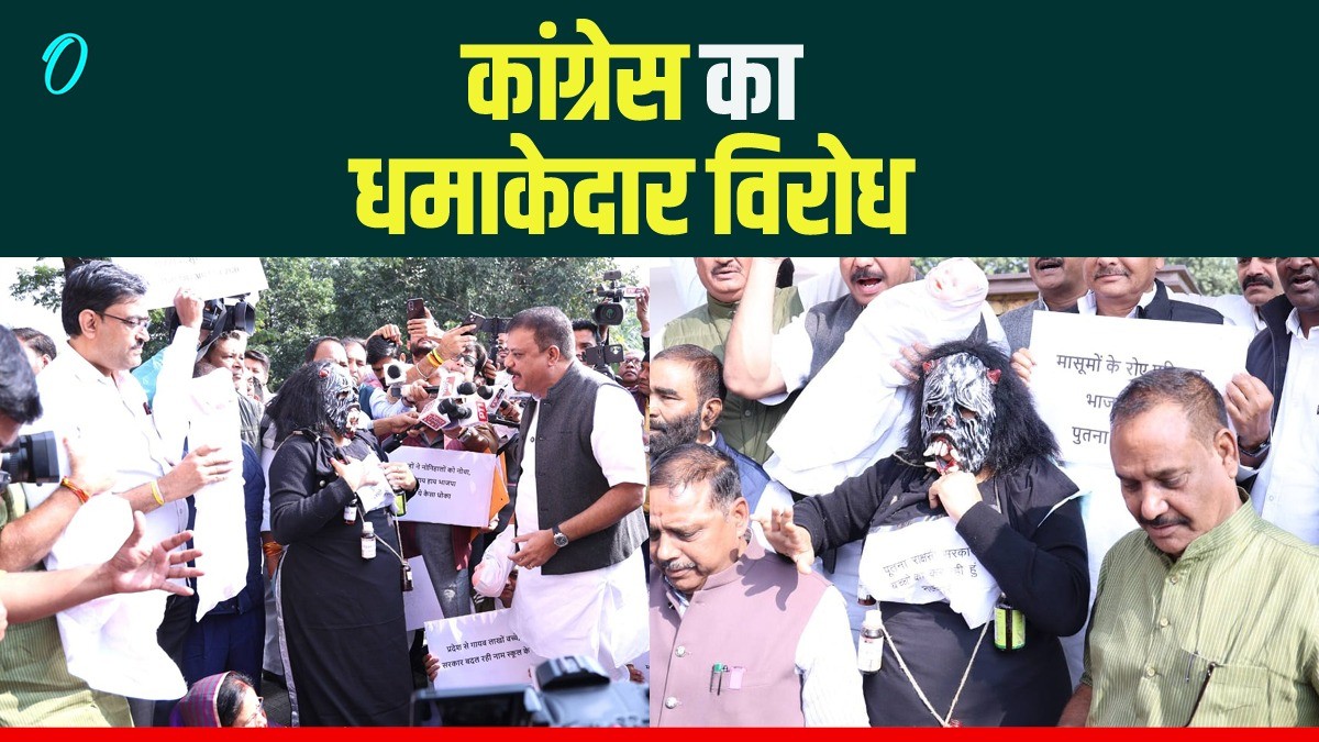 प्रदर्शन का केंद्र रहा छिंदवाड़ा जिले में कफ सिरप पीने से हुई मासूम बच्चों की मौत, प्रदेश में बढ़ते बाल अत्याचार और भाजपा सरकार की कथित असंवेदनशीलता। विधानसभा परिसर में सांकेतिक प्रदर्शन ने सदन के बाहर हलचल मचा दी, जहां कांग्रेस विधायकों ने बच्चों के पुतले थामे और एक विधायिका ने 'पूतना' का गेटअप धारण कर सरकार की लापरवाही को प्रतीकात्मक रूप से उजागर किया।