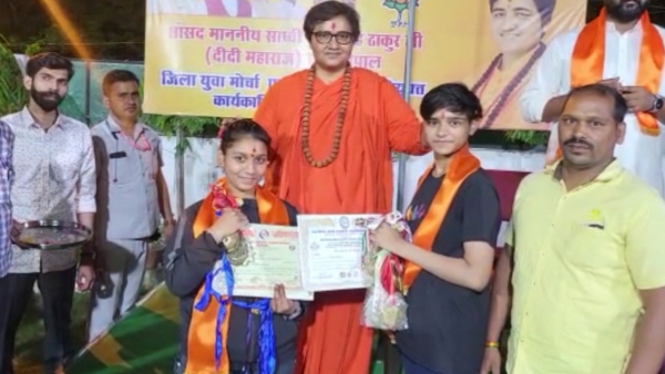 भोपाल में सांसद प्रज्ञा सिंह ठाकुर ने कराटे खिलाड़ियों का सम्मान किया। इस मौके पर सांसद प्रज्ञा ठाकुर ने नन्हे खिलाड़ियों को ₹5100 की राशि भी प्रदान की।