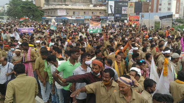 भुववेश्वर, 29 अक्टूबर। कोरोना वायरस संकट के बीच ओडिशा की सड़कों पर शुक्रवार को लोगों का हुजूम देखने को मिला। ओडिशा ड्राइवर महासंघ के बैनर तले 50 हजार से अधिक लोगों ने प्रदेश की राजधानी भुववेश्वर में विशाल पैदल मार्च (पदयात्रा) निकाला। ड्राइवरों ने खुद को कोरोना योद्धा का टैग, न्यूनतम वेतन, पेंशन और बीमा कवर सहित 10 मांगों को लेकर बड़ी संख्या में पलासुनी से मुख्यमंत्री आवास तक पैदल मार्च निकाला। इस दौरान किसी अप्रिय घटना से बचने के लिए सीएम आवास पर सुरक्षा बढ़ा दी गई थी।