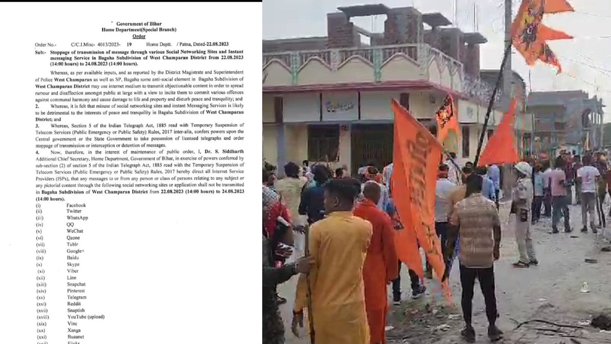 Bagaha News:पश्चिम चंपारण जिला के बगहा उपमंडल में सोशल मीडिया पर प्रतिबंध लगा दिया है। बिहार सरकार की तरफ़ से जारी नोटीफिकेशन में लिखा गया है कि 22 अगस्त दोपहर 1 बजे से 24 अगस्त दोपहर 1 बजे तक सोशल मीडिया साइट्स पर प्रतिबंध रहेगा।