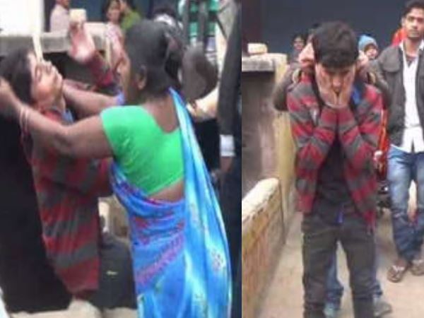 छेड़खानी कर रहे मनचले को लड़की की मां ने जमकर पीटा, देखें तस्वीरें