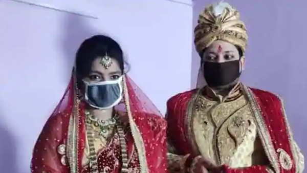 मास्क पहनकर निभाई शादी की रस्में