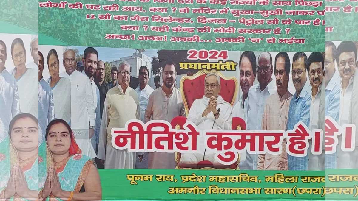 राजद दफ्तर के बाहर लगाए गए पोस्टर में लिखा 2024 प्रधानमंत्री नीतेशे कुमार है। पोस्टर की सियासत तो शुरू हो गई है, लेकिन नीतीश कुमार कई बार खुद को इस ट्रैक से बाहर करते हुए, इससे जुड़े नारे के लगाने के लिए भी मना कर चुके हैं।