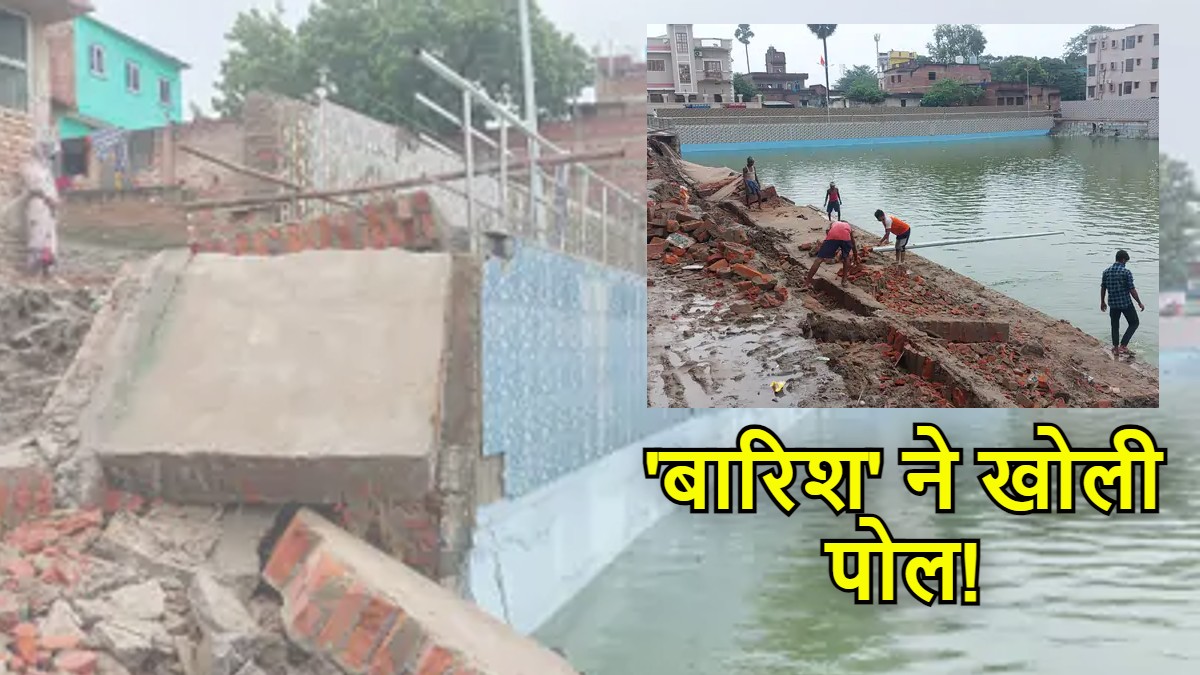 बाउंड्री वाल एवं रिटेनिंग वाल धराशाही होने के बाद आनन फानन में संबंधित ठेकेदार ने मजदूरों द्वारा तालाब से मलबे को निकालने के काम में लगा दिया। वहीं ग्रामीणों ने कहा कि सौंदर्यीकरण कार्य के मद्देनज़र जो टाइल्स लगाए गए हैं, वह भी कुछ जगहों से उखड़ रहे हैं।