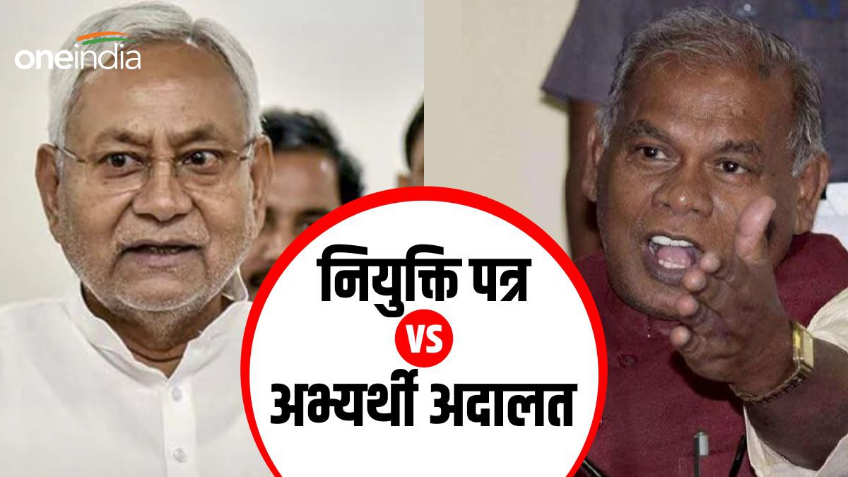 Bihar News: Jitan Manjhi Vs Nitish Kumar: बिहार में शिक्षक भर्ती परिणाम जारी होने के बाद से ही सियासत तेज़ हो चुकी है। इसी क्रम में प्रदेश के पूर्व मुख्यमंत्री जीतन राम मांझी ने प्रदेश सरकार के ख़िलाफ़ झंडा बुलंद कर दिया है। एक तरफ़ पटना के गांधी मैदान में सीएम नीतीश कुमार शिक्षक अभ्यर्थियों को नियुक्ति पत्र सौंपेंगे। वीं दूसरी तरफ़ पूर्व मुख्यमंत्री जीतन राम मांझी बिहारी शिक्षक अभ्यर्थी अदालत लगाएंगे।