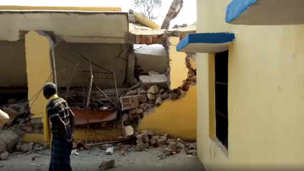 नक्सलियों ने दो मंजिला सामुदायिक भवन को विस्फोट से उड़ाया, फेंका धमकी भरा पर्चा