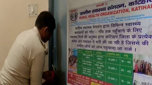 पटना, 13 मई 2022। बिहार के कटिहार में जिला प्रशासन द्वारा बड़ी कार्रवाई की गई। बेतल मिशन चर्च के पास स्वास्थ्य क्षेत्र में बहाली की सूचना मिलते ही एसडीपीओ जांच में पहुंचे। जांच के दौरान अनियमितता पाए जाने पर कार्यालय को सील कर दिया गया है। दरअसल ग्रामीण स्वास्थ्य संगठन की ओर से 3 पदों के लिए बहाली निकाली गई थी। जिसमें स्वास्थ्य मित्र, सुपरवाइजर और डाटा ऑपरेटर के लिए भर्ती लिया जा रहा था। जिसमें हर आवेदक से फॉर्म भरने के नाम पर 500 रुपये लिए जा रहे थे।