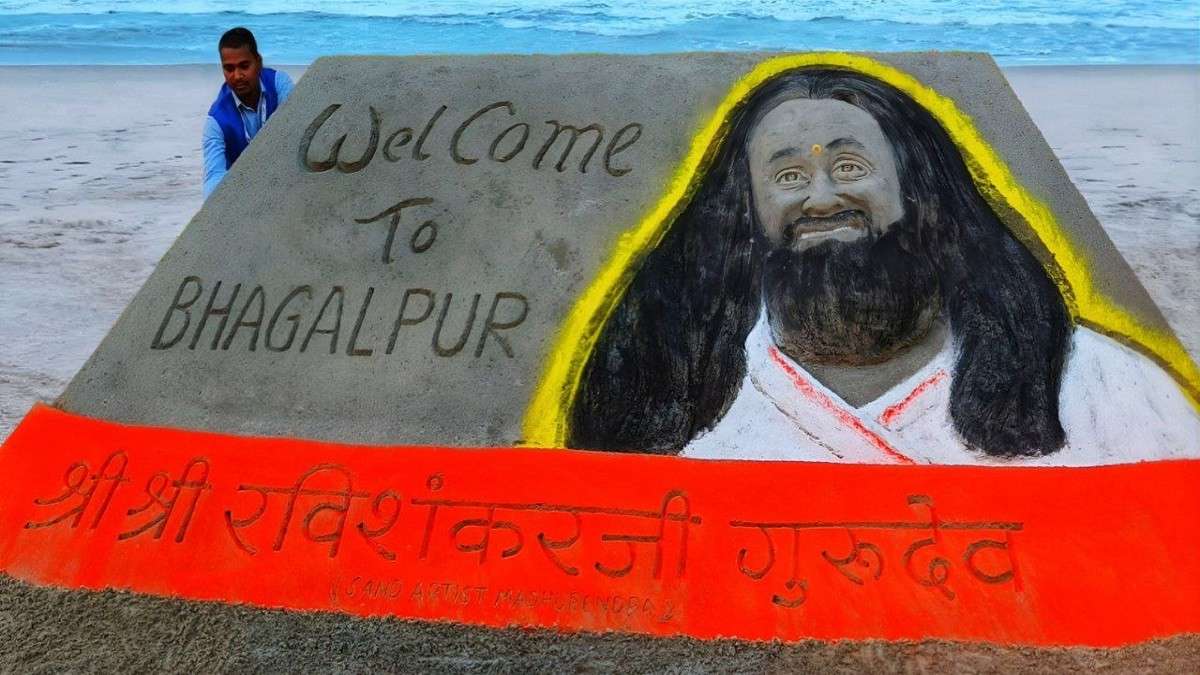International Sand Artist Madhurendra News: उज्ज्वल बिहार महासत्संग के लिए भागलपुर की अपनी पहली यात्रा के दौरान, आध्यात्मिक गुरु श्री श्री रविशंकर का स्वागत एक अनूठी श्रद्धांजलि के साथ किया गया।