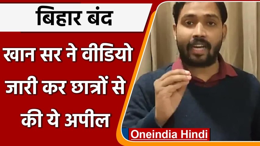 पटना। RRB-NTPC परीक्षा को लेकर बिहार में मचे बवाल में छात्रों को भड़काने के आरोप में घिरे खान सर ने छात्रों से प्रदर्शन खत्म करने को कहा है। खान सर ने यूट्यूब पर वीडियो अपलोड कर कहा है कि पीएमओ और रेलवे ने छात्रों की सभी मांगों को मान लिया है, इसलिए वह आज बंद और प्रदर्शन में हिस्सा न लें। ये बहुत गलत होगा। हालांकि खान सर की अपील के बाद भी बिहार बंद के लिए छात्र सड़कों पर उतर गए हैं।