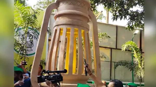 पार्टी कार्यालय में बने 6 टन के लालटेन का राजद सुप्रीमो लालू प्रसाद यादव ने किया उद्घाटन