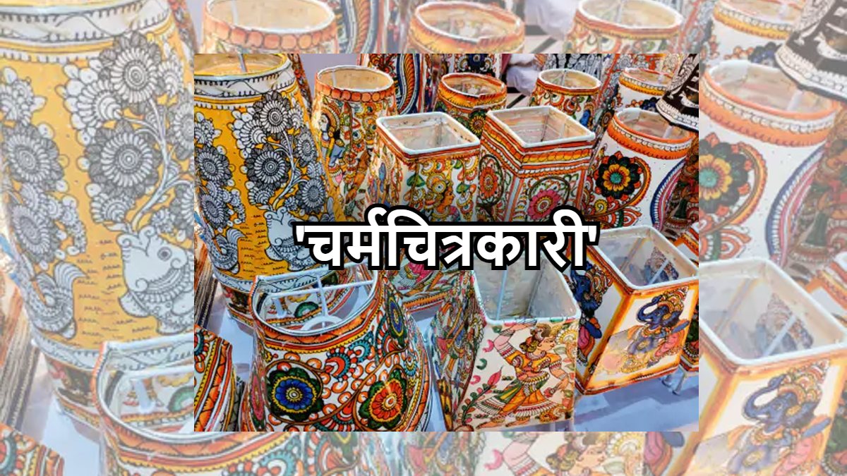 Painting On leather Sheet: बिहार की राजधानी पटना में के सरस मेले में 'चर्मचित्रकारी' चमड़े की शीट पर चित्रकारी सुर्खियां बनी हुई हैं। आंध्र प्रदेश निवासी मणि कुमार चित्रकारी करते हैं। वहीं उनकी मां सिंधी शंकरम्मा लेदर शीट पर बनी चित्रकारी में रंग भरती हैं। आपको बता दें कि 'चर्मचित्रकारी' (लेदर पपेट) को उन्होंने टेबल लैंप, फ्लोर लैंप, वॉल पेंटिंग इत्यादि में उकेरा है।