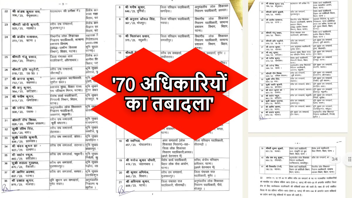 Officers Transfer In Bihar: बिहार में प्रशासनिक सेवा के 70 अधिकारियों का तबादला, देखें लिस्ट