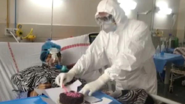 प्राप्त जानकारी के मुताबिक महिला ने आज यानी कि मंगलवार को अपवी शादी की सालगिरह होने की बात एम्स में इलाज कर रहे डॉक्टर को बताई थी और इसे मनाने की इच्छा भी जताई थी। डॉक्टरों की टीम ने उसकी बात को माना और फिर केक मंगाया गया। साथ ही महिला के पति को पीपीई किट पहनाकर वार्ड में बुलाया गया और फिर उसके बाद महिला को ऑक्सीजन लगे हुए हालात में उसके बेड पर ही केक रखा गया।