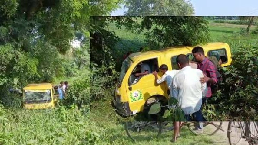 बिहार: तेज़ रफ्तार में स्कूल वैन चला रहा था ड्राइवर, पीछे से बाइक सवार को मारी टक्कर, घायलों का इलाज जारी