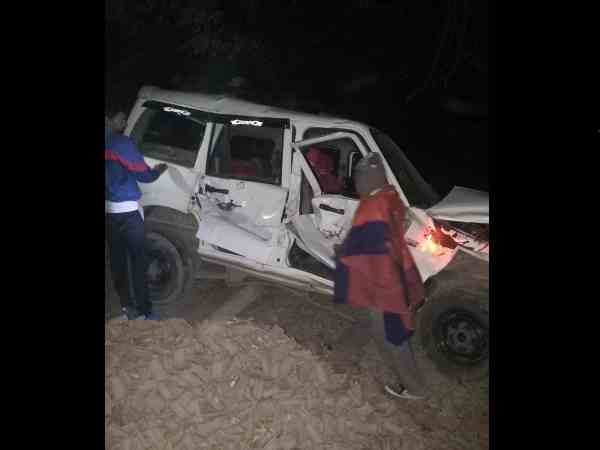 बिहार: ट्रेन से जा टकराई तेज रफ्तार स्कॉर्पियो, इंजन में जा फंसी