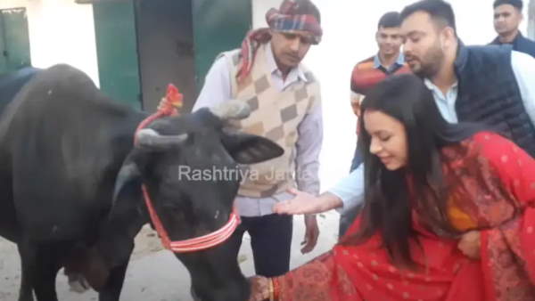 राजेश्वरी वैसे तो पली-बढ़ी दिल्ली में हैं लेकिन अब वह पटना में लालू परिवार में घुल-मिल रही हैं और वहां के रहन-सहन को सीखने की कोशिश कर रही हैं। इसी कड़ी में बुधवार को राजद की तरफ से तेजस्वी यादव और उनकी पत्नी का एक वीडियो जारी किया है, जिसमें तेजस्वी और राजेश्वरी राबड़ी देवी के आवास में बने गौशाला में नजर आ रहे हैं।