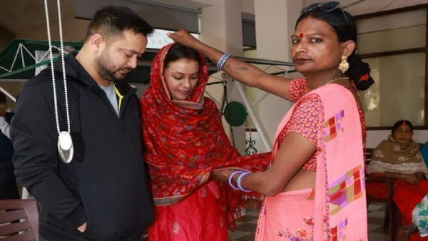 बिहारः तेजस्वी और उनकी पत्नी को किन्नरों ने दिया आशीर्वाद, नेग के तौर पर मिले 15 हजार रुपये